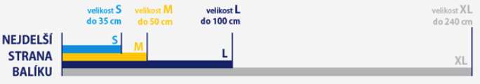 Opouštíme složitý výpočet ceny na základě hmotnosti a místo něj zavádíme čtyři velikostní kategorie: S, M, L a XL. Do které kategorie balík spadá zjistíte jednoduše podle jeho nejdelší strany.